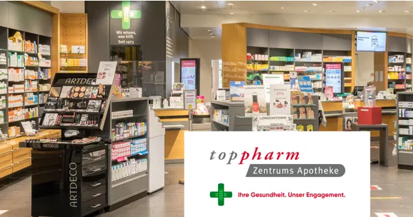Einlösbar in der Toppharm Zentrums Apotheke Regensdorf. Nicht gültig auf rezeptpflichtigen Medikamenten. Pro Person und Einkauf kann nur ein Bon eingelöst werden. Nicht kumulierbar mit anderen Bons, Aktionen, bereits reduzierten Artikeln oder Vergünstigungen. Keine Barauszahlung.